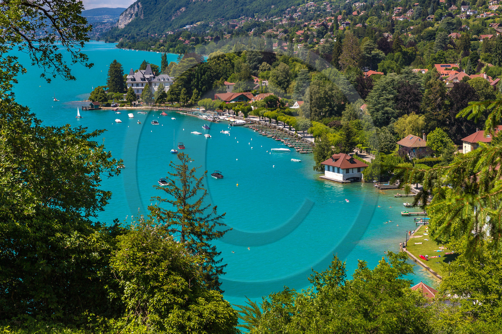 | Description | Haute-Savoie (74), lac d'Annecy, Talloire, Réserve naturelle du Roc de Chère, belvédère sur Menthon-Saint-Bernard |