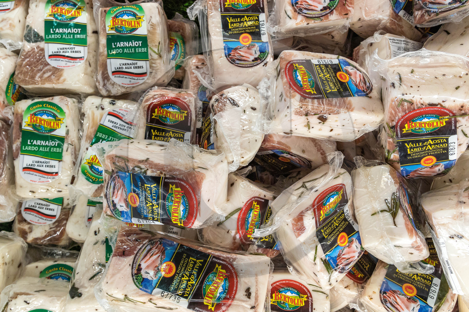 | Description | Italie, vallée d'Aoste, Arnad, Maison Bertolin, Lard d’Arnad AOP et charcuteries porcines, bovines, ovines, équines, mixtes et issues de gibier |