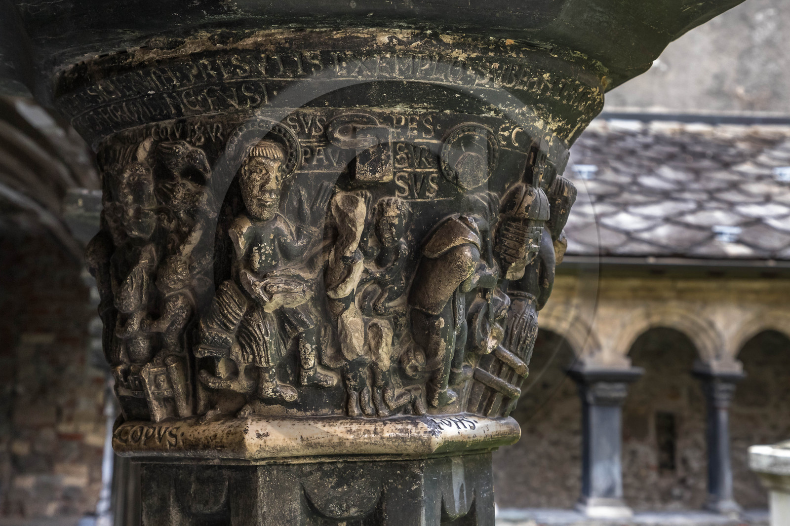 | Description | Italie, vallée d'Aoste, Aoste, Collégiale de Saint-Ours, chapiteaux en style lombard-catalan-provençal du cloître |
