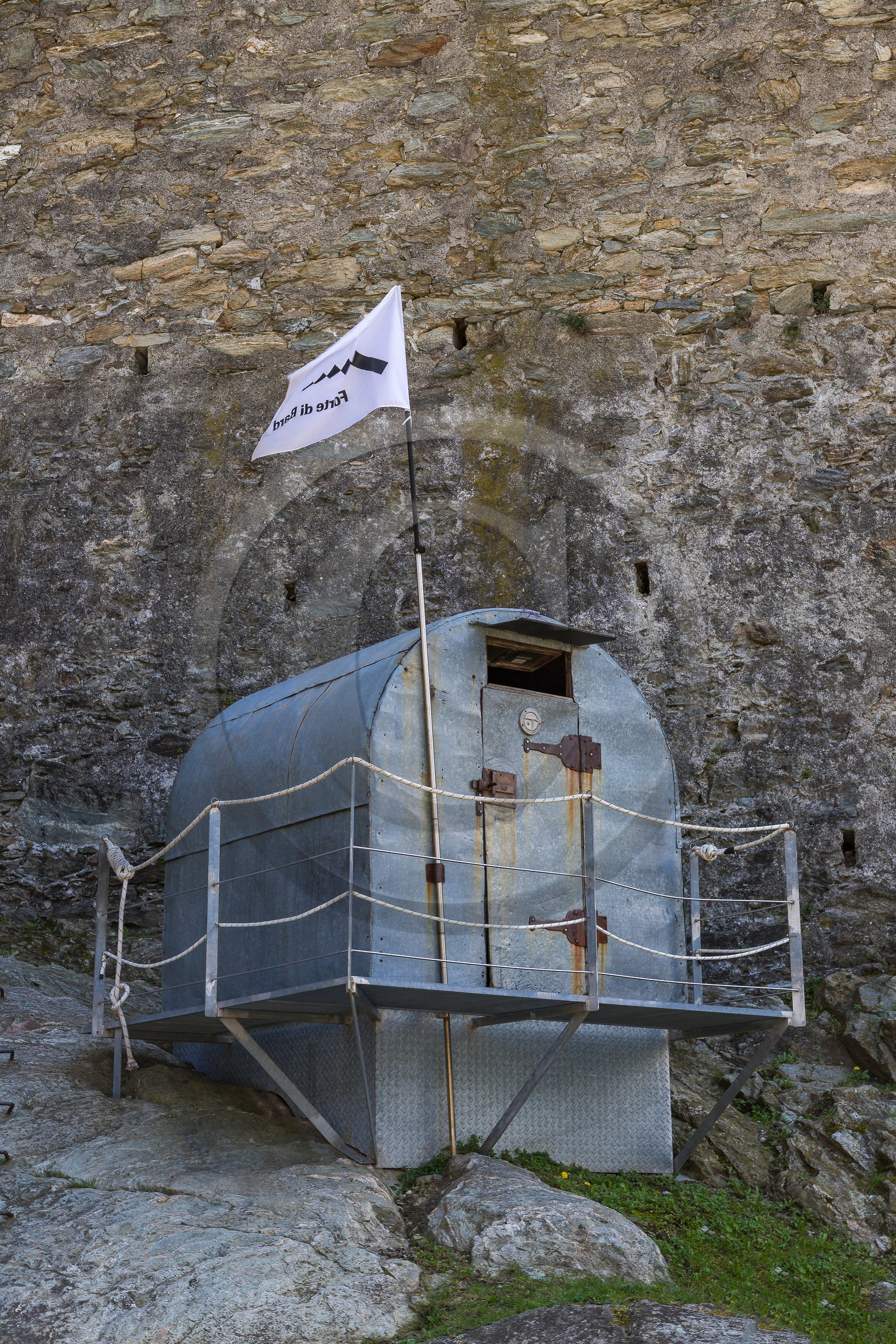 | Description | Italie, vallée d'Aoste, Bard, place forte Fort de Bard, ancien refuge-bivouac Giuseppe Lampugnani du Pic Eccles Mont-Blanc |
