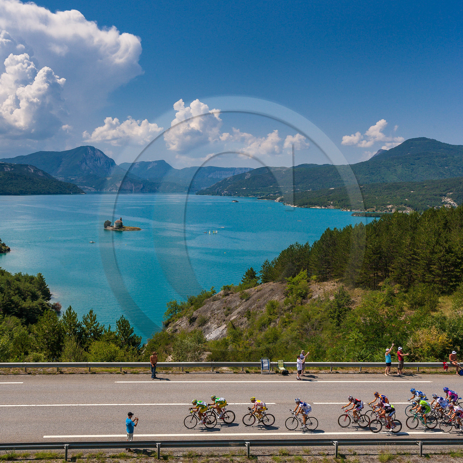 | Description | Hautes-Alpes Lac de Serre-Ponçon, la baie et la Chapelle Saint-Michel, course cycliste Le Tour de France |