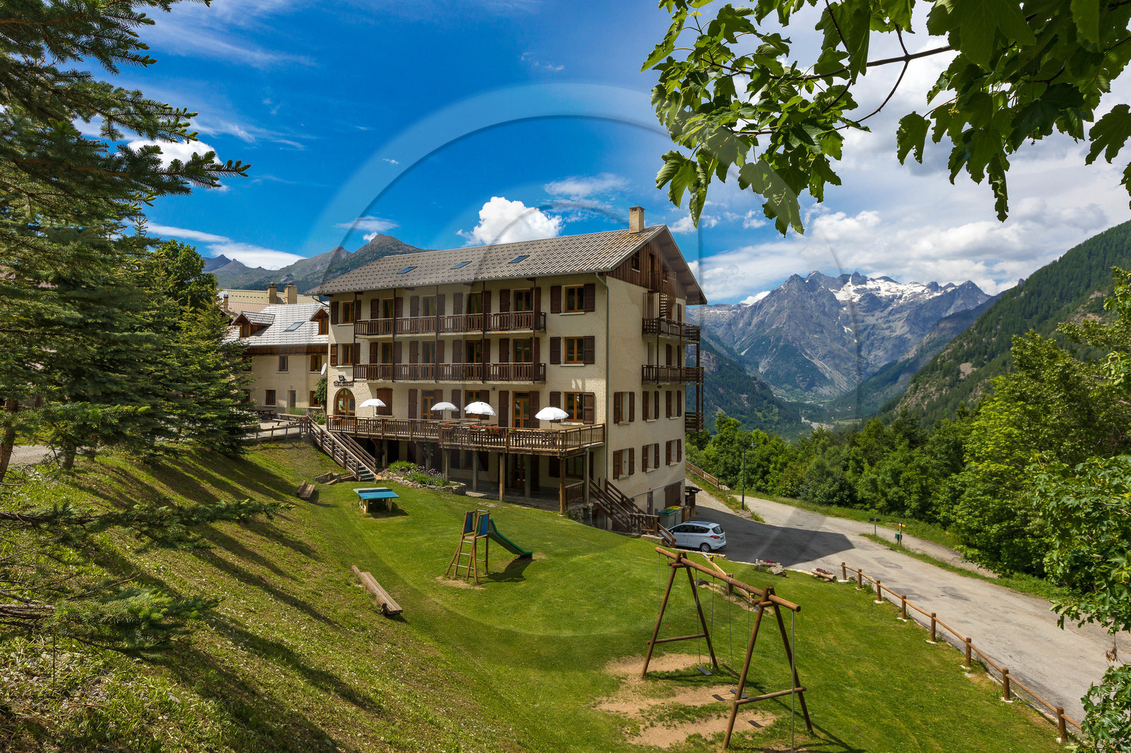 | Description | Hautes-Alpes (05), Vallée du Champsaur, Serre-Eyraud, Centre de Vacances le Mélézin |