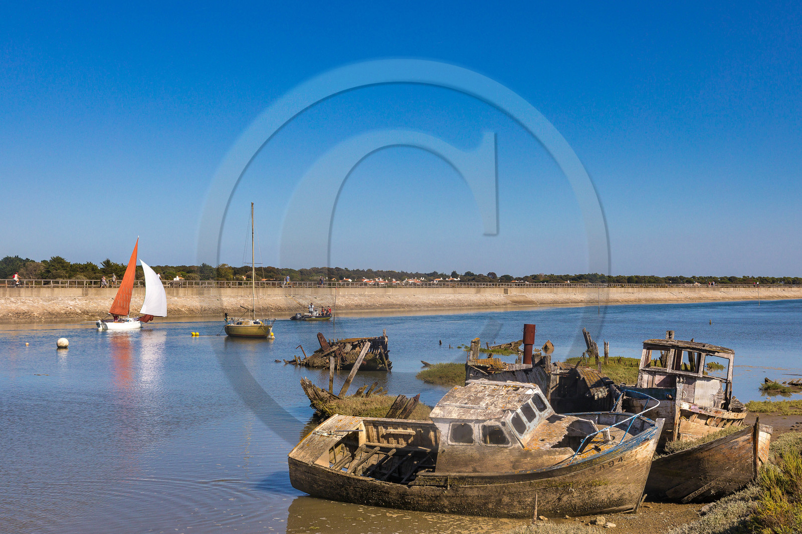 | Description | Vendée (85), Île de Noirmoutier, Noirmoutier-en-l’île et le cimetière de bateaux |