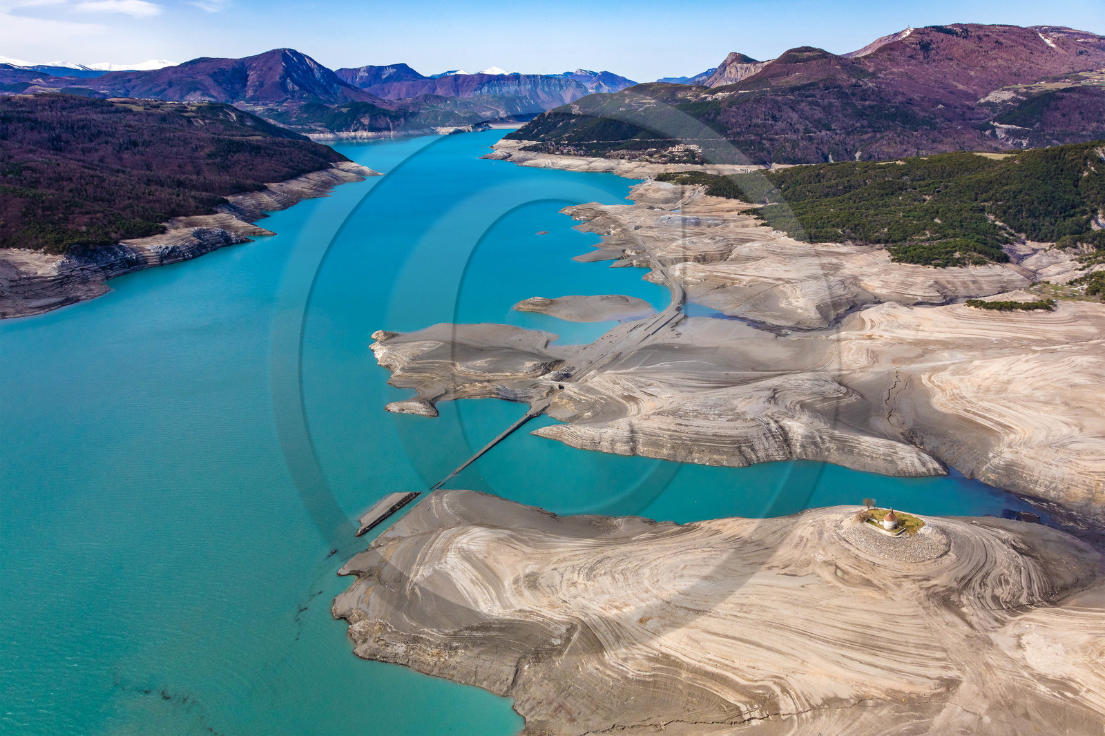 | Description | Hautes-Alpes (05), Pays de Serre-Ponçon, Barrage EDF, Lac de Serre-Ponçon, le niveau du lac est donné en mètres NGF 732 le 15 avril 2018 |