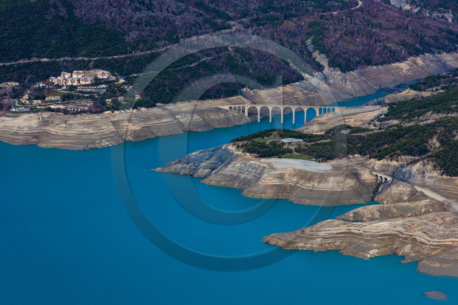 | Description | Hautes-Alpes (05), Pays de Serre-Ponçon, Barrage EDF, Lac de Serre-Ponçon, le niveau du lac est donné en mètres NGF 732 le 15 avril 2018 |