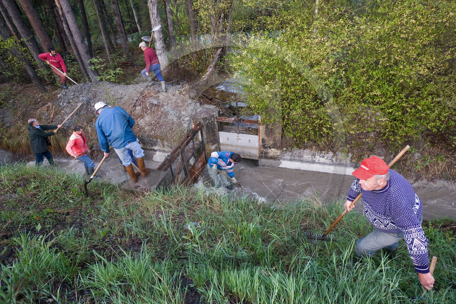 | Description | Hautes-Alpes (05), Chantemerle Serre-Chevalier, réseau des canaux d'irrigation du Briançonnais, canal d'irrigation, Canal Gaillard, corvée d’entretien, corvér annuelle |