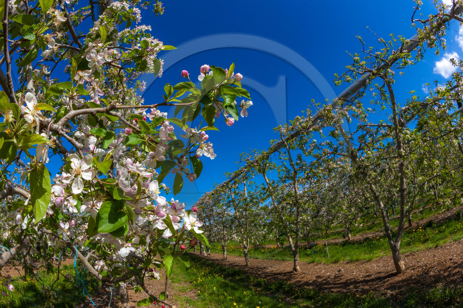 | Description | Hautes Alpes (05), vallée de la Durance, arboriculture, pommiers en fleur, producteur de pommes |