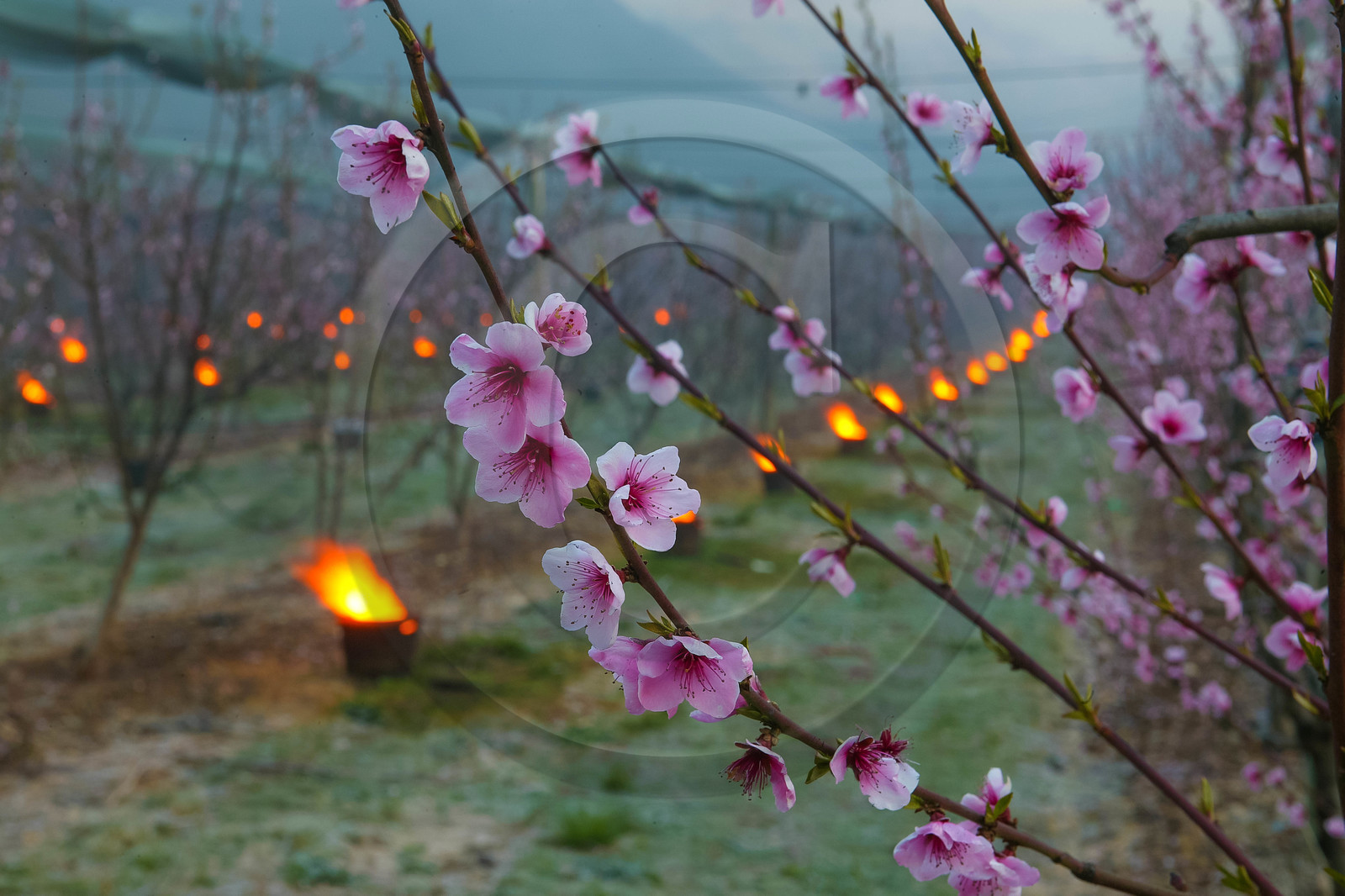 | Description | Hautes-Alpes (05), Vallée de la Durance, arboriculture, verger, chaufferettes à gazole pour la protection des fleurs du gel des pommiers et pêchers |