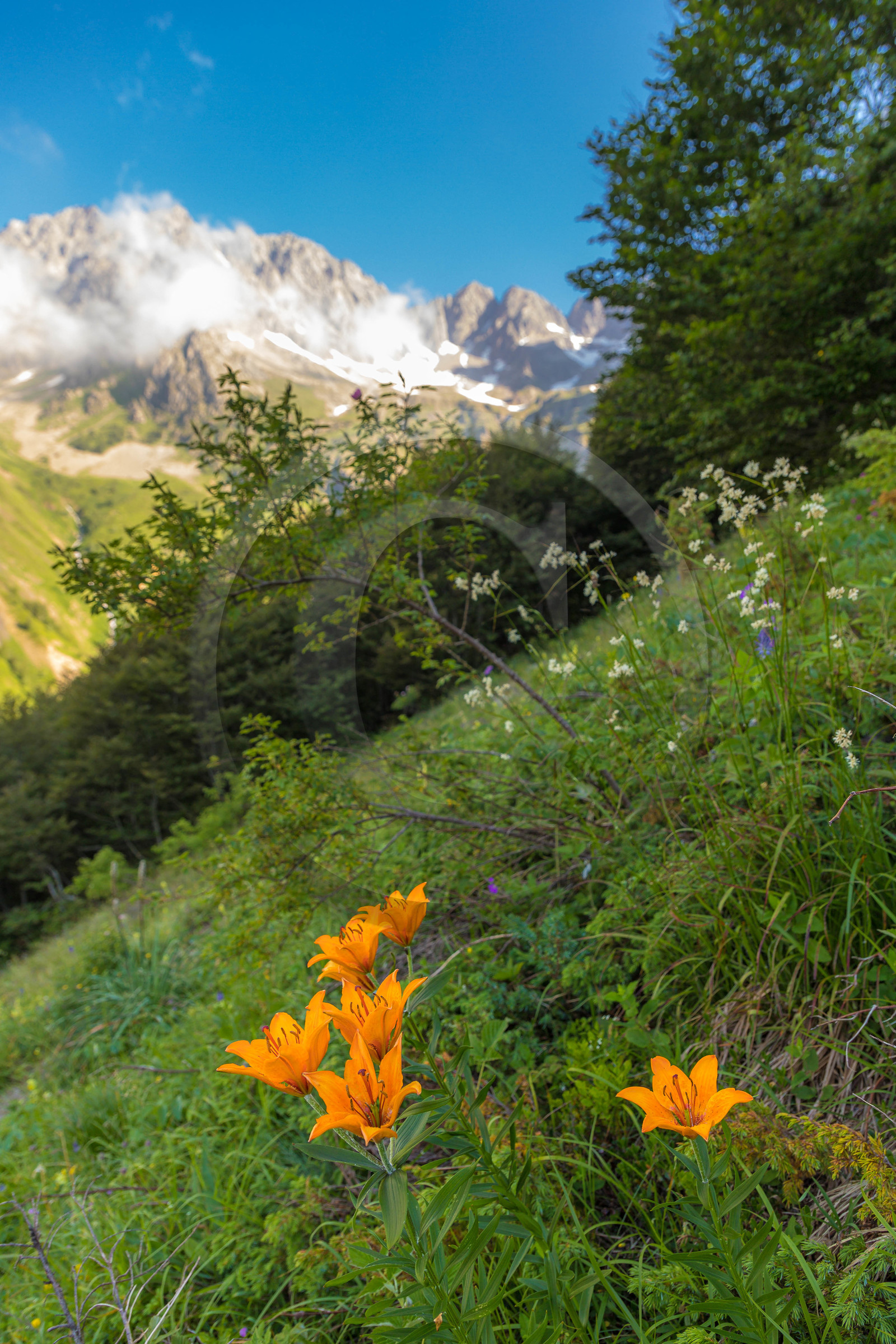 | Description | Hautes-Alpes (05), Champsaur Valgaudemar, Valgaudemar, Villar-Loubière, GR54 vers le Refuge des Souffles, lis orangé |