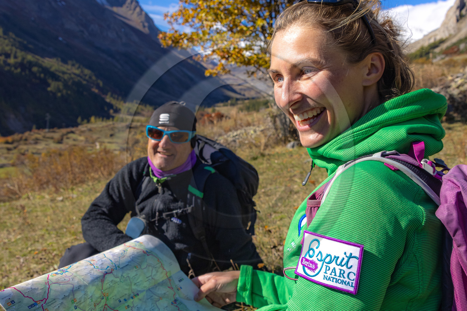 | Description | Hautes-Alpes (05), Parc national des Ecrins, Vallée de la Guisanne, Serre-Chevalier, Bureau Montagne Visa Trekking, randonnée pédestre avec Marjolaine Flammier, accompagnatrice en moyenne montagne, sortie découverte bouquetin Esprit Parc national |